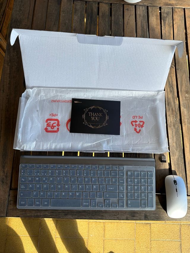 Conjunto de teclado y ratón inalámbricos en color gris. Incluye el receptor USB. Esta nuevo, usado solo durante 3 meses, tiene funda de teclado.
