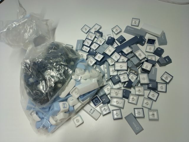 Detalles del productoLote de teclas para teclado mecánico. Incluye una variedad de teclas con diferentes leyendas y diseños.