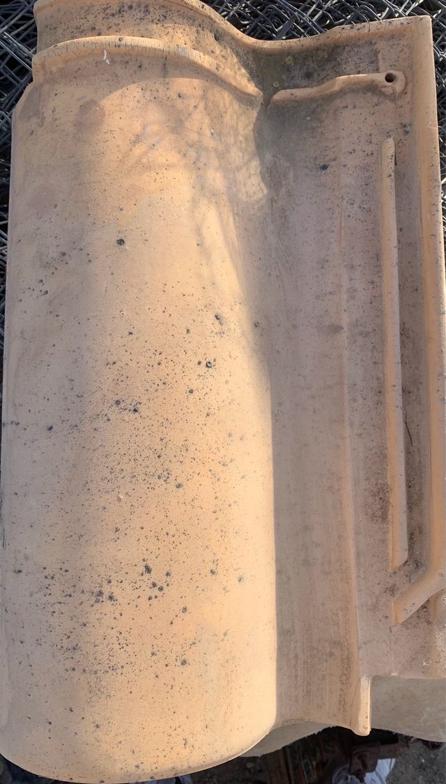 Teja de cerámica tradicional, ideal para tejados o proyectos de restauración. unas 100 tejas. unos 10 metros cuadrados - Material: Cerámica. - Color: Terracota. - Diseño curvo..