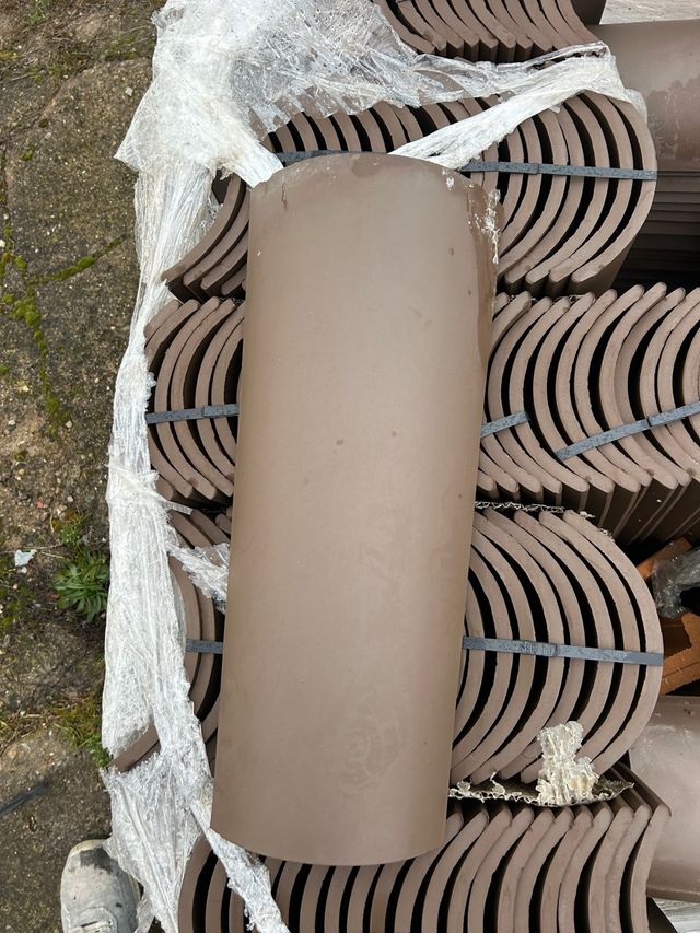 Teja curva de color oscuro, ideal para tejados. - Material: Cerámica. - Color: Marrón oscuro.