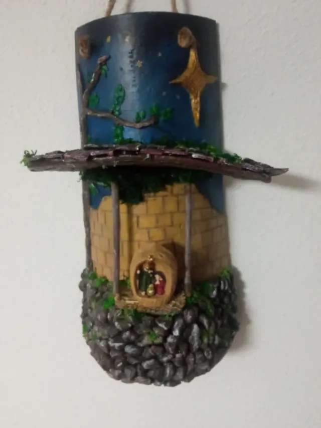 Detalles del productoDecoración navideña artesanal con escena del Belén.