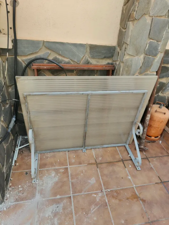 Detalles del productoTejadillo o marquesina metálica con cubierta de policarbonato.