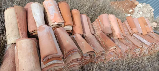 Lote de tejas de barro, ideales para la construcción o reparación de tejados.