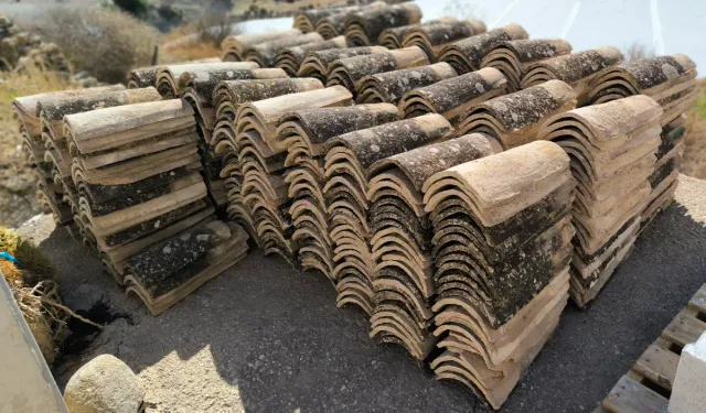 Lote de tejas árabes de terracota, ideales para tejados tradicionales. - Material: Terracota. - Estilo: Árabe. - Acabado: Natural con pátina del tiempo.