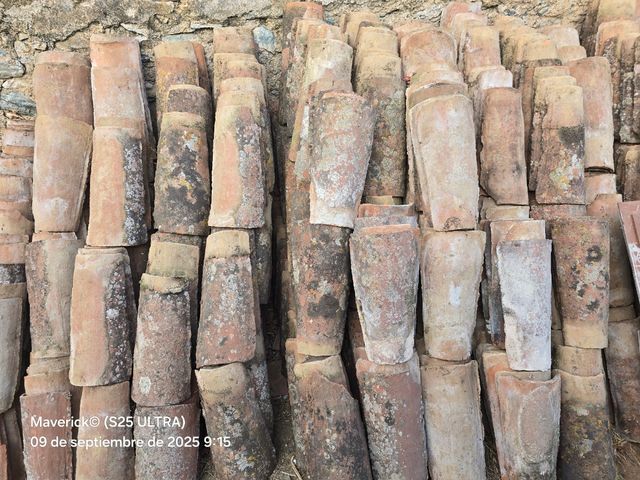 Detalles del productoLote de tejas árabes de barro, ideales para tejados tradicionales.