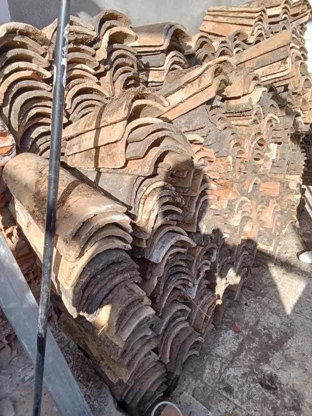Lote de tejas de barro, ideal para tejados o proyectos de construcción. - Cantidad aproximada: 700 unidades. - Precio por unidad: 0,50 €.