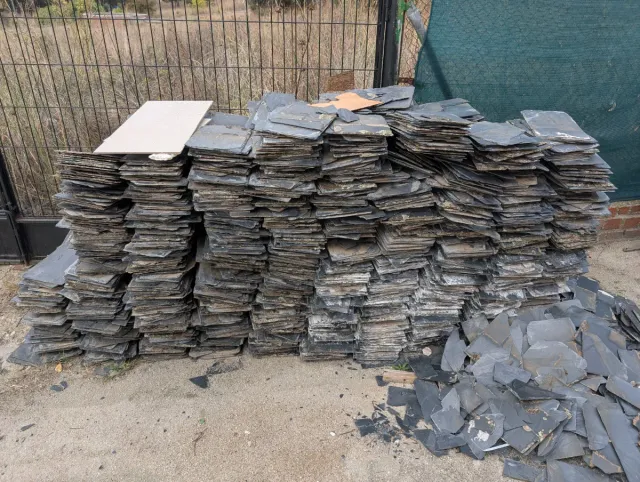 Detalles del productoLote de tejas de pizarra (unos 100m), ideales para cubiertas y tejados. Son piezas naturales con un acabado rústico.