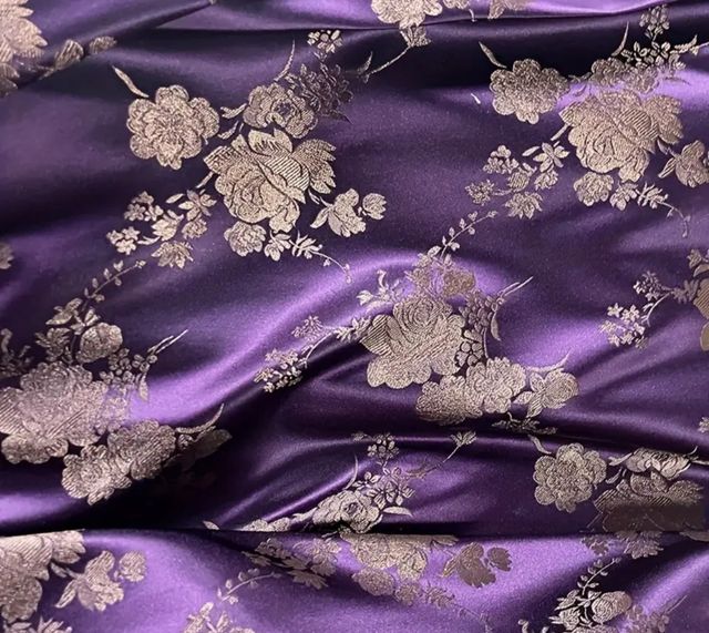 Tela fallera: morado y flores marrones.