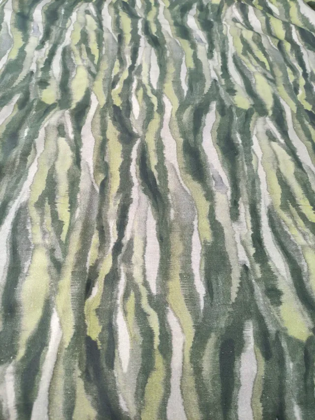 Detalles del productoBonita tela o retal marca Canvas Swafing rayas acuarela, tonos verdes y grises le dan un toque artístico y moderno, muy actual. Es de puro algodón versátil que tiene una textura fuerte y suave. Muy buena calidad. Ideal para una decoración elegante, como tapizado, cortina o cojines va genial.