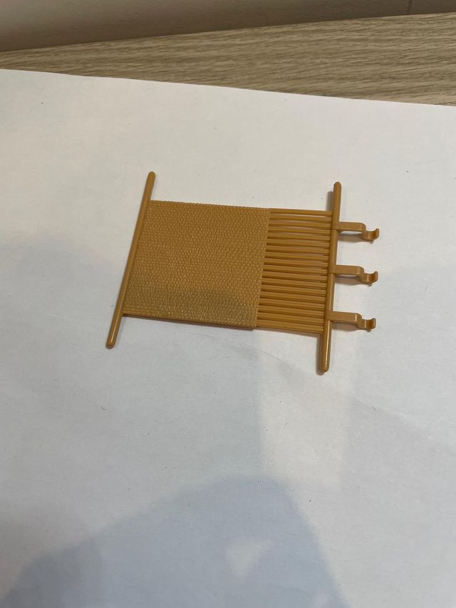 Telar de juguete de Playmobil, es un solo telar lo que se ve en la foto 1€ - Pieza de plástico de color tostado. - Diseño con textura tejida y barras.