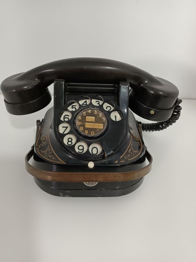 Teléfono antiguo, con asa, es un modelo muy elegante y proporcionado. El asa es muy original, para cogerlo y moverlo.