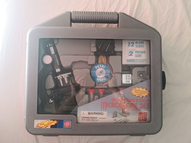 Maletín con microscopio, le falta 2 pequeños botes y una placa. Se vende por falta de uso.