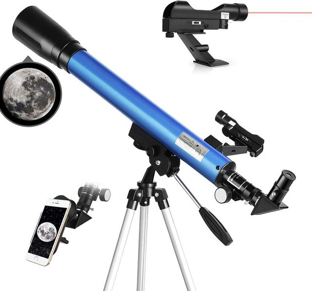 Detalles del productoTelescopio de iniciación de 50 mm de apertura y 600 mm de longitud focal, ideal para observar el cielo. Incluye oculares de 20 mm y 12,5 mm, ofreciendo ampliaciones de 20x y 48x. Viene con un buscador de punto rojo para ubicar objetivos fácilmente y un trípode retráctil. Compatible con smartphones gracias a su adaptador para teléfono. Montura altazimutal y recubrimiento múltiple en las lentes para una mejor transmisión de luz.
