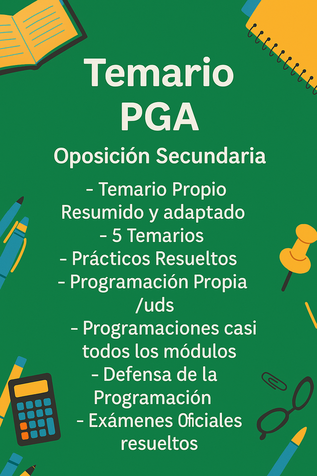 Detalles del productoSe vende pack temario para la preparación las oposiciones de profesor por la especialidad de GESTIÓN ADMINISTRATIVA (PGA).