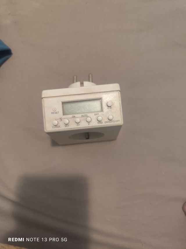 Detalles del productoVendo temporizador digital de enchufe en buen estado. Es de color blanco y tiene una pantalla digital para programar el encendido y apagado de tus dispositivos.