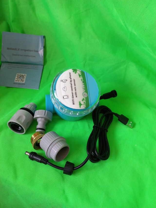 Detalles del productoVendo temporizador de riego WiFi, nuevo. Es de color azul y se controla mediante una aplicación para teléfono.