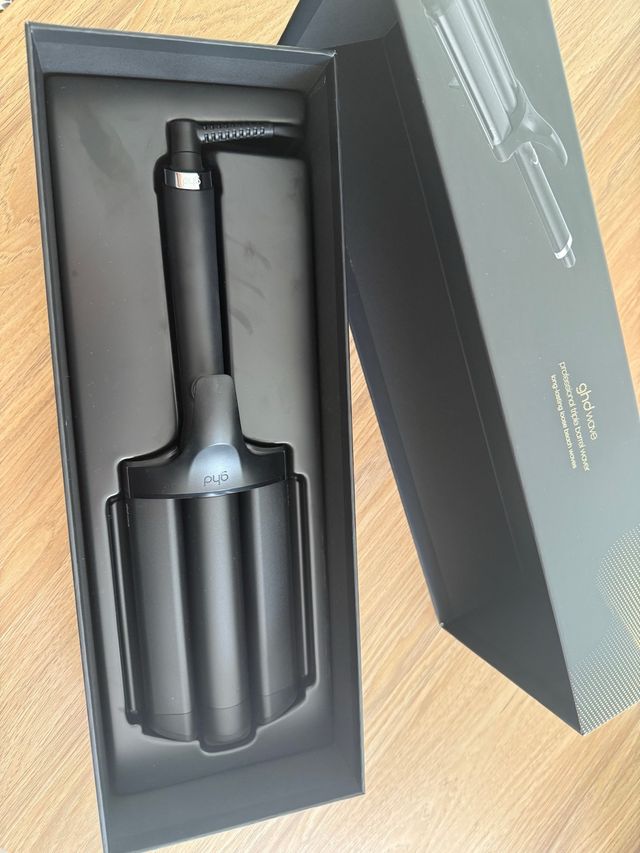 Tenacilla triple de la marca ghd, ideal para crear ondas definidas. Sin usar. Comprada en El corte ingles. Precio en tienda 210€. - Color negro. - Diseño ergonómico.