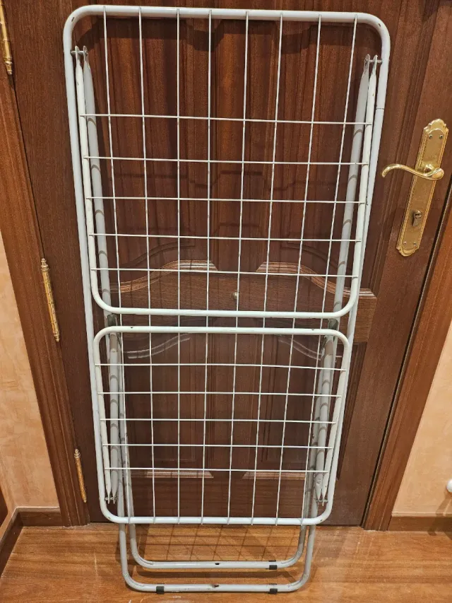 Detalles del productoTendedero plegable de color blanco, ideal para secar la ropa en casa.