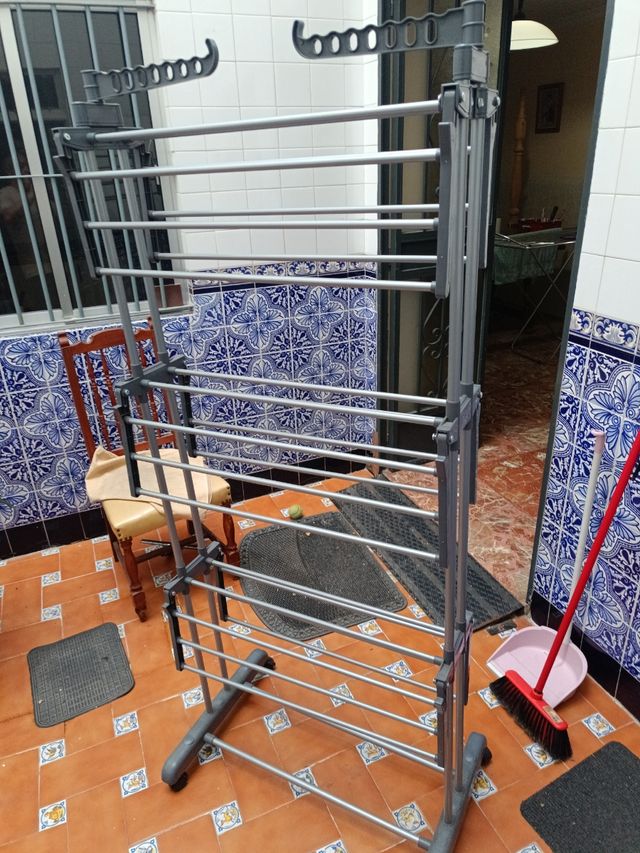 Detalles del productoTendedero de ropa vertical, ideal para espacios reducidos. Se encuentra en buen estado.