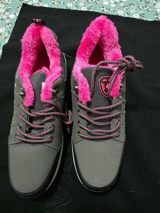 Tenis invierno gris-rosa talla 40