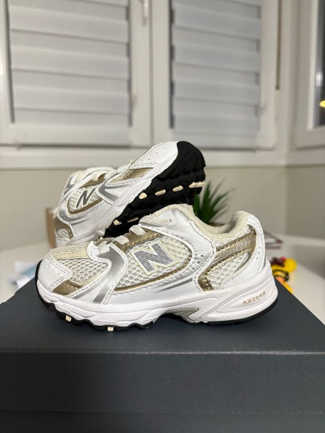 Tenis New Balance Niño Blanco y Dorado número 24