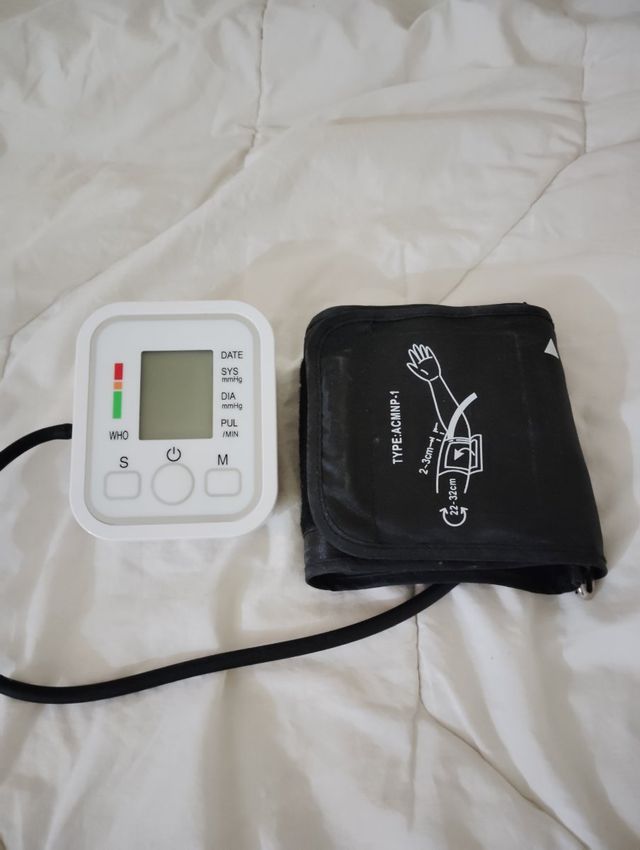 Tensiómetro digital para medir la presión arterial. - Pantalla LCD. - Brazalete incluido - Botones de inicio/parada y memoria.