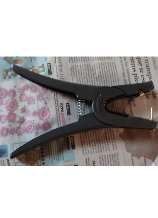 Herramienta para la colocación de crotales de la marca CROMASA. - Fabricada en metal resistente. - Diseño ergonómico para un fácil agarre.