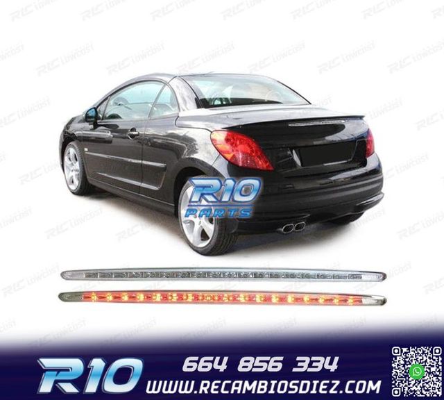 Detalles del productoMóvil: 664 856 334 - Referencia: RLC148669. TERCERA LUZ DE FRENO PEUGEOT 207 CC LED CROMO Valido para: Peugeot 207CC (2006-2012) Variante: Cabrio Especificaciones: Tecnologia: LED Color: Transparente / Cromo Homologacion Europea. lampara con E-Mark (Certificado Europeo) grabado en el cristal. Montaje. Instalacion fácil, sin necesidad de modificacion alguna Garantia. Dispne de 3 años de garantia. Estos no son productos originales de la marca PEUGEOT. El artículo ofrecido, solo es compatible para los modelos de vehículos descritos.