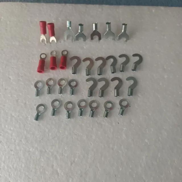 Lote de terminales eléctricos de diferentes tipos y tamaños. - Terminales de horquilla. - Terminales de anillo. - Terminales de pala.