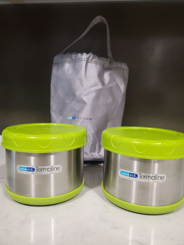 Set 2 termos para transportar todo tipo de alimentos, tanto sólidos como líquidos. Resistente y duradero para mantener la comida caliente durante horas. Acero inoxidable. Tapa de rosca. Doble pared interior con cámara de vacío, mantiene alimentos fríos o calientes.