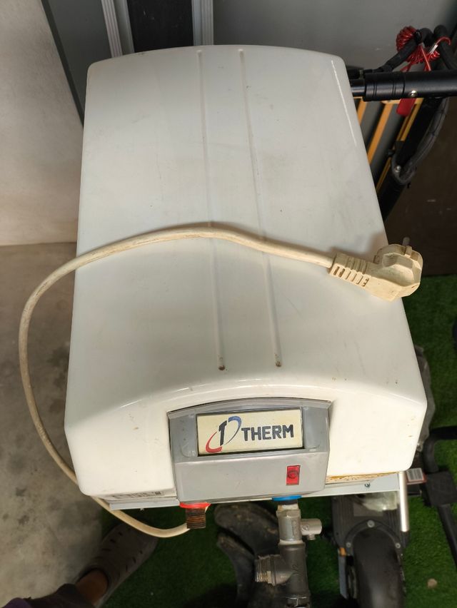 Detalles del productoCalentador de agua DTherm de 15 litros, ideal para casa o caravana. Se encuentra en buen estado, aunque presenta algunas señales de uso.
