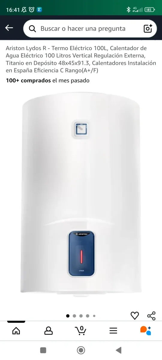 Detalles del productoCalentador de agua eléctrico Ariston Lydos R de 100 litros.