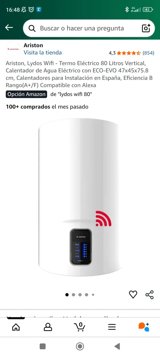 Detalles del productoTermo eléctrico Ariston Lydos Wifi de 80 litros.
