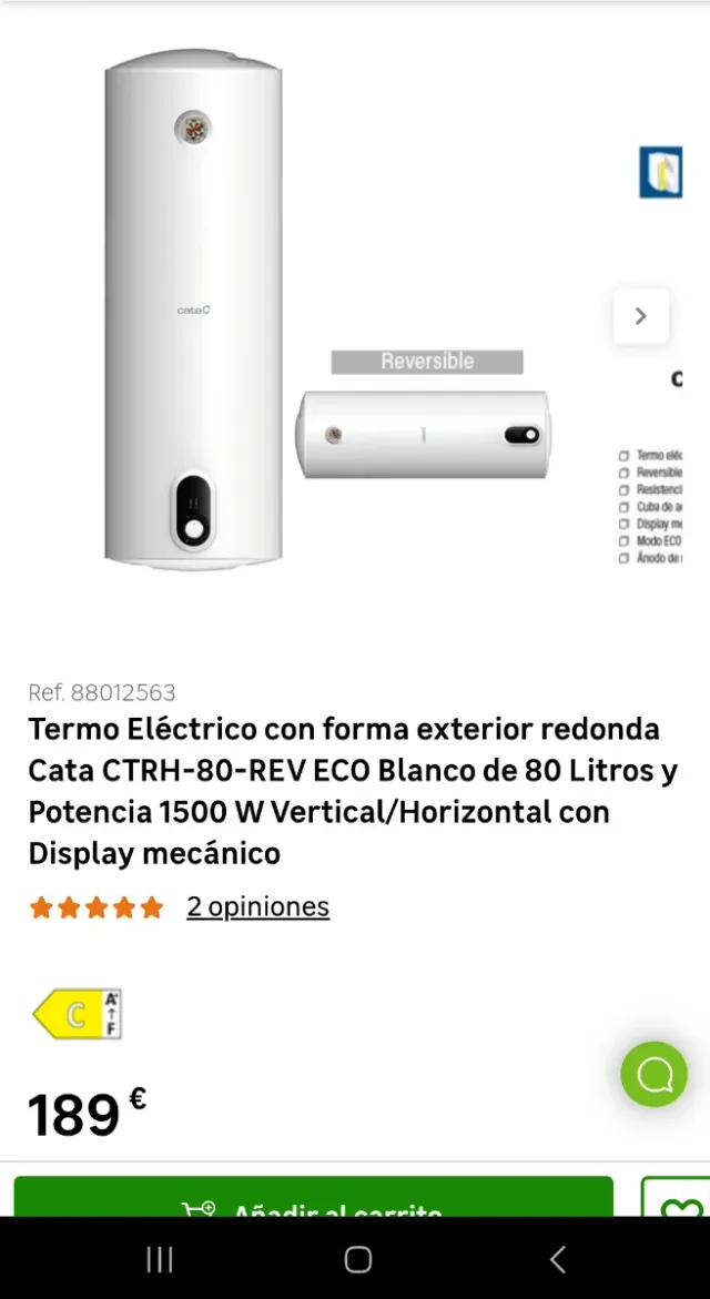 Detalles del productoTermo eléctrico de la marca Cata con capacidad de 80 litros.
