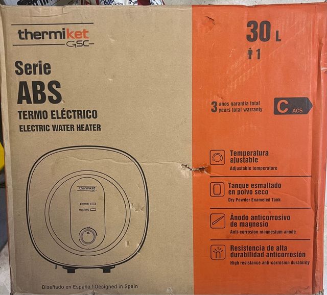 Detalles del productoCalentador de agua eléctrico Thermiket Serie ABS de 30 litros.