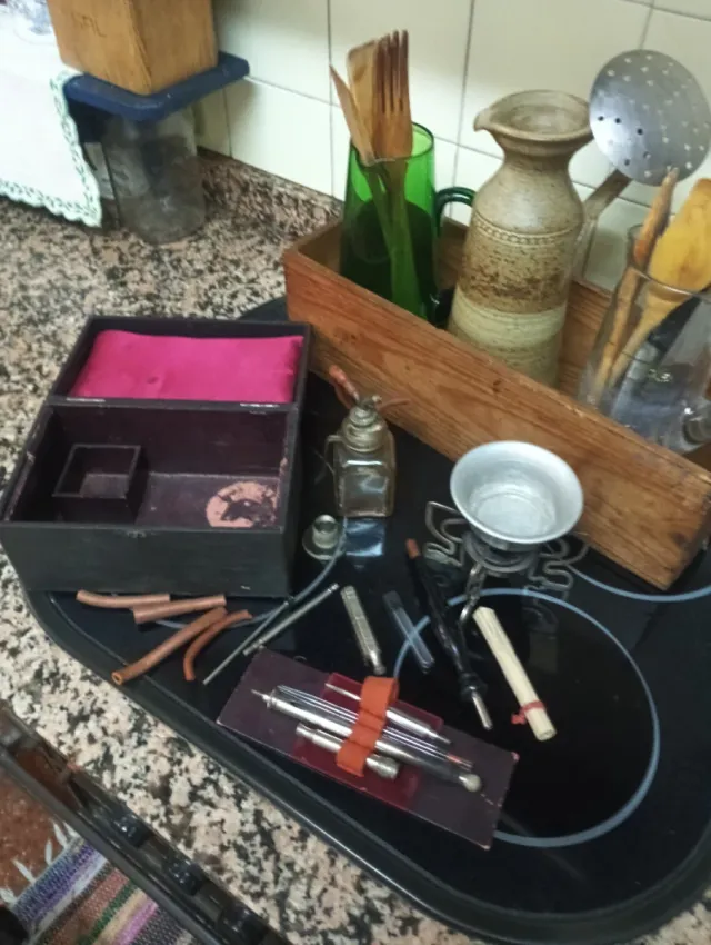 - Materiales de calidad. Es considerado colección instrumental médico histórico.tiene todas las piezas y su caja original solo falta cambiar las gomas pues de los años están desechas último precio 60€