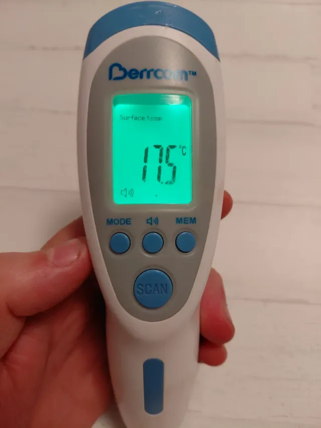 Termómetro digital Berrcom TM para medir la temperatura de superficies. - Pantalla digital iluminada. - Diseño ergonómico. -El modo ROOM NO FUNCIONA, el resto sí