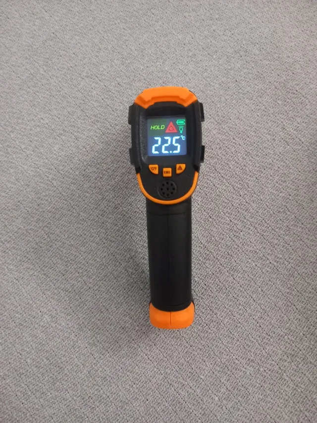 Detalles del productoTermómetro digital de infrarrojos con pantalla LCD.