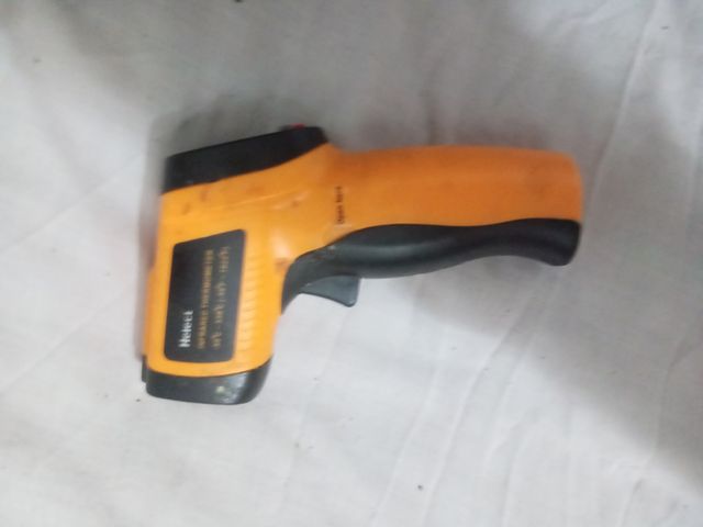 Detalles del productoTermómetro digital de infrarrojos marca Helect. Ideal para mediciones rápidas y sin contacto.