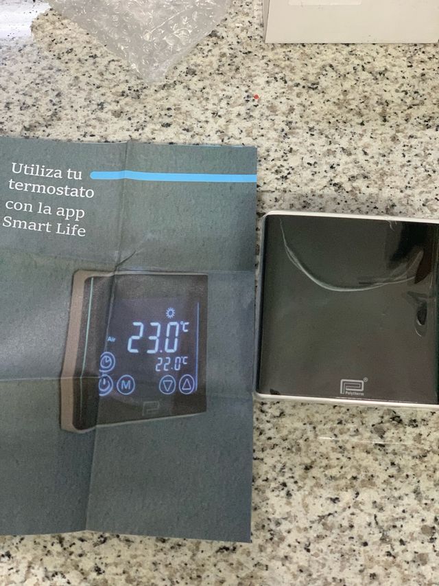 Detalles del productoTermostato inteligente Polyther para suelo radiante con conectividad WiFi. Permite controlar la temperatura de tu hogar de forma remota.