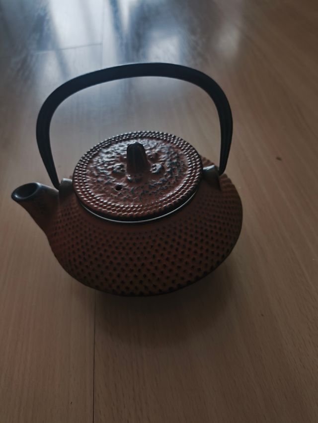 Detalles del productoTetera una dosis de hierro fundido con un diseño texturizado y un asa curva.