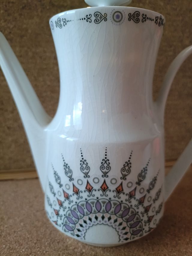 Detalles del productoPreciosa tetera retro de la desaparecida Ibero Tanagra Santander de los años 60. Craquelado del paso del tiempo, con el asa reparada y algún pequeño desastillado en la base de la tapa y la tapa. Ideal kintsugi Medidas del producto