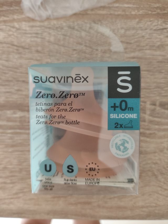 Detalles del productoPack de 2 tetinas de silicona para biberón Suavinex Zero Zero de flujo lento. Nuevas.