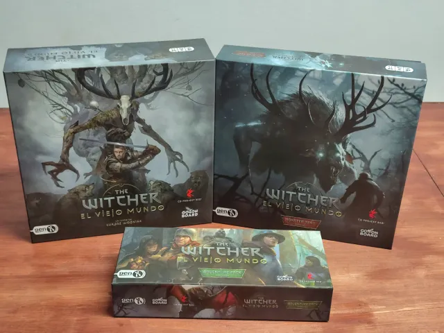 - Juego base The Witcher: El Viejo Mundo. Edición retail, solo incluye las miniaturas de los brujos