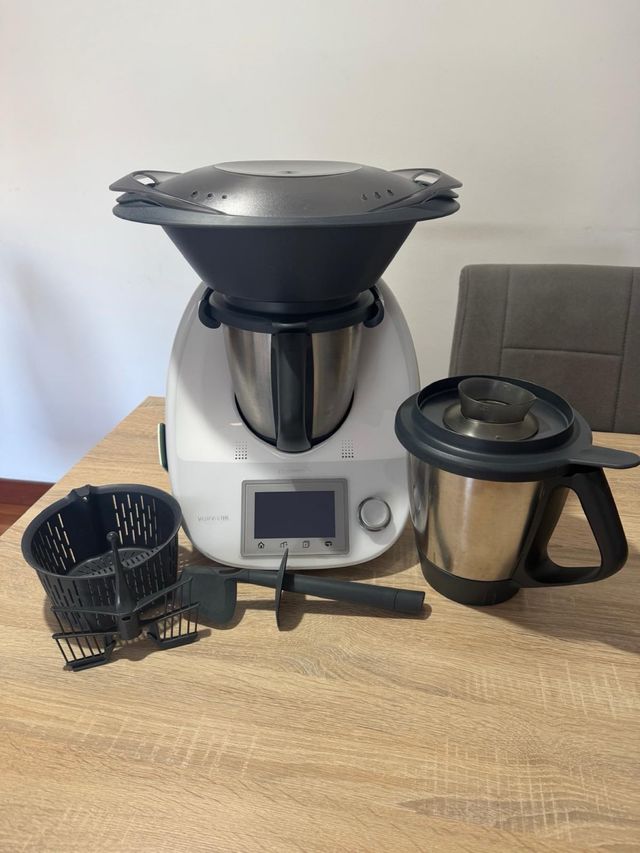 Se vende Thermomix TM5 en buen estado. Incluye todos los accesorios visibles en la foto. - Dos vasos. - Cestillo. - Mariposa. - Espátula. - Varoma.