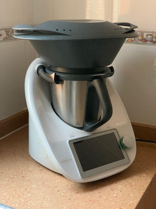Robot de cocina Thermomix TM6. - Color blanco. - Pantalla táctil. - Dial giratorio. - Asa integrada. - Jarra de acero inoxidable.