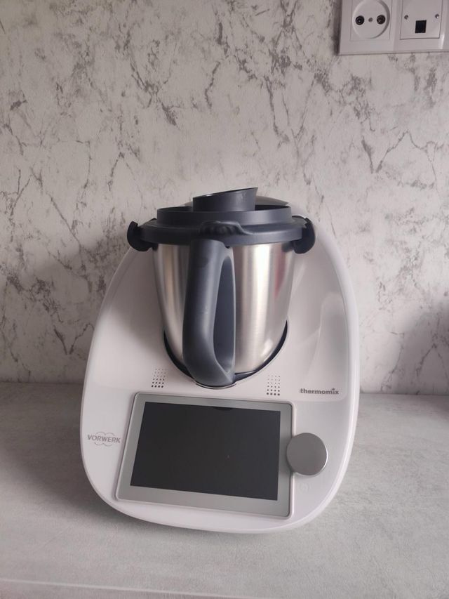 Robot de cocina Thermomix TM6. - Diseño moderno y funcional. - Pantalla táctil intuitiva. - Asa ergonómica para un agarre cómodo.