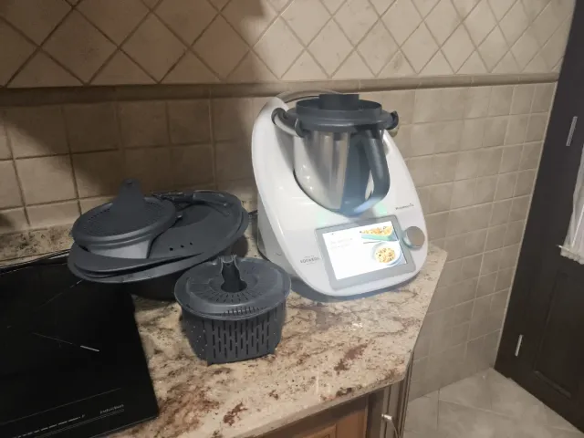 Robot de cocina Thermomix TM6 en color blanco. - Jarra de acero inoxidable. - Pantalla táctil a color. - Incluye accesorios.