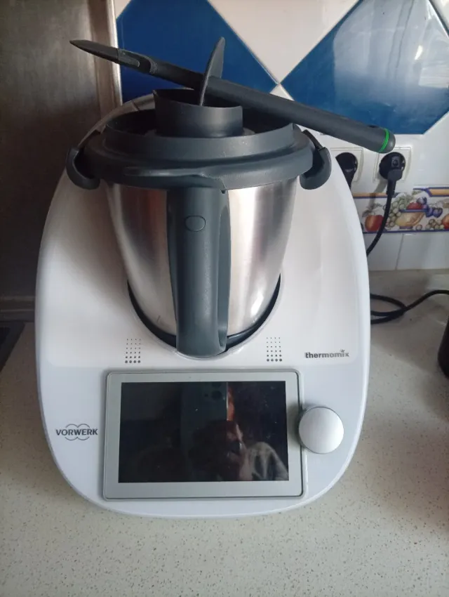 Robot de cocina Thermomix de la marca Vorwerk. Incluye espátula. - Jarra de acero inoxidable. - Pantalla táctil. - Dial giratorio.