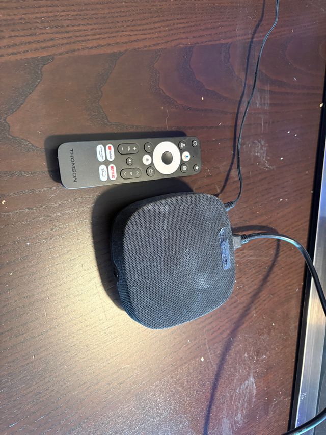 Detalles del productoDispositivo de streaming Thomson 270 Google TV. Viene con el mando original, enchufe, cable HDMI. Lo compre en Octubre de 2025 cuando me cambio de operador de fibra (a O2) y me tuve que comprar un nuevo tv box. Mi televisor nuevo no necesita esta cajita auxiliar. No tengo la caja original. Precio nuevo 90 Euros (en Amazon)